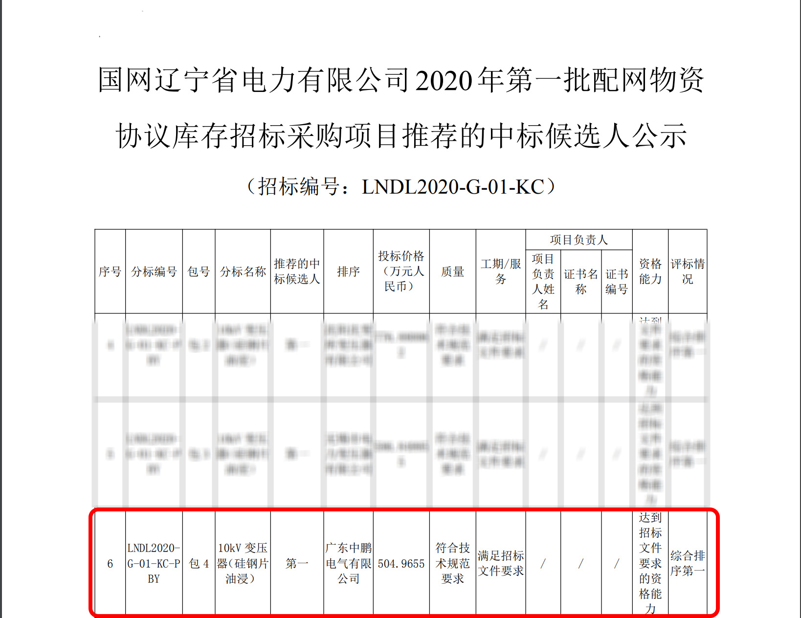 憑借良好的信譽、出色的業績、專業的技術能力以及合理的報價,中鵬在眾多競爭對手中脫穎而出,成功中標“國網遼寧省電力有限公司2020年第一批配網物資協議庫存招標采購項目”標包4,中標金額約505萬元。
